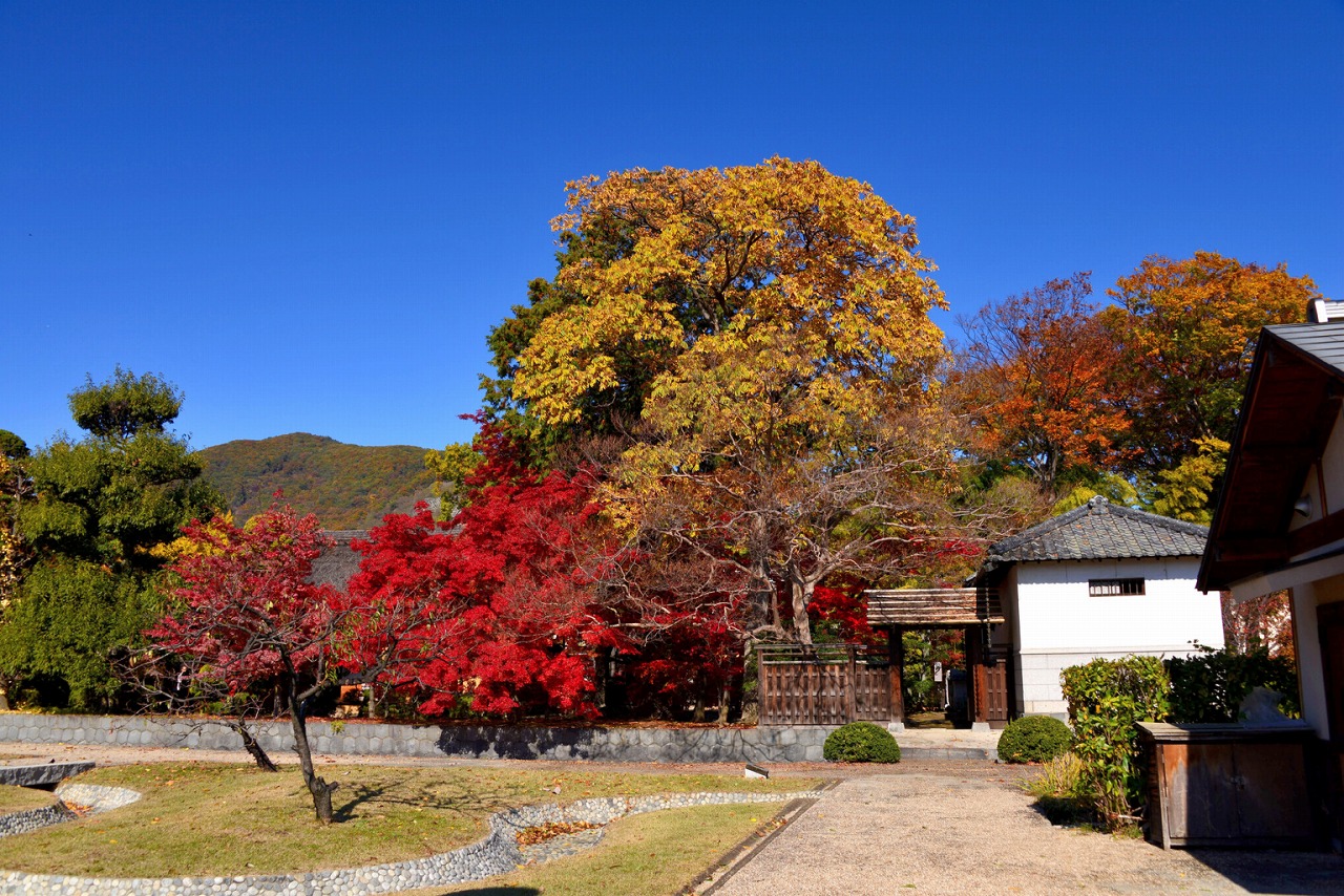 県指定文化財に登録された歴史的建築物です。秋にはカエデやケヤキが鮮やかに色づき、風情豊かな景観を楽しめる人気の観光地となっています。