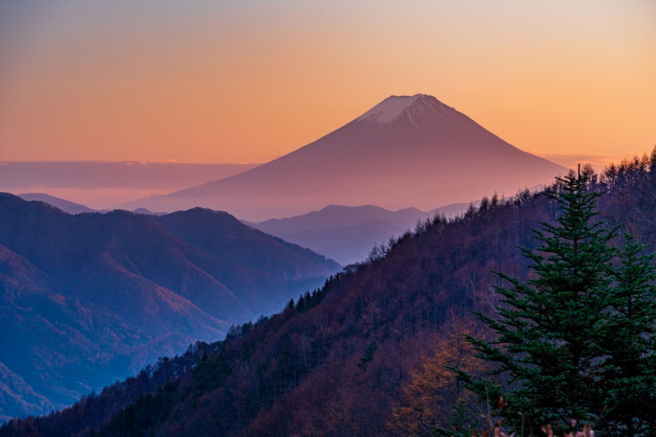 例年、標高の高い大菩薩嶺や奥多摩・道志村の山間部では10月中旬頃から紅葉が始まり、その後、山梨市や笛吹市、甲州市の里山や温泉地へと色づきが広がります。