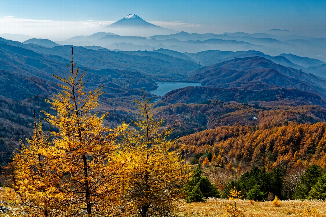秋にはカラマツの黄葉や鮮やかな紅葉が山々を彩り、ドライブ中にパノラマビューが広がります。山梨の自然と歴史を同時に感じられる、秋の絶景ルートとして人気を集めています。