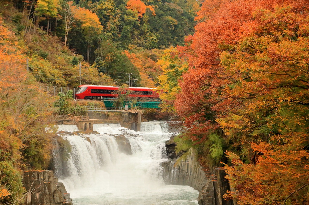 国内屈指の渓谷美と紅葉の名所として知られる人気の観光地です。特に、日本の滝百選に選ばれた「七ツ釜五段の滝」は、そのダイナミックな景観で訪れる人々を魅了します。