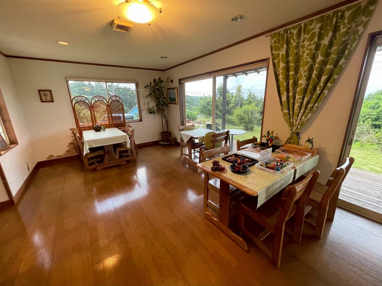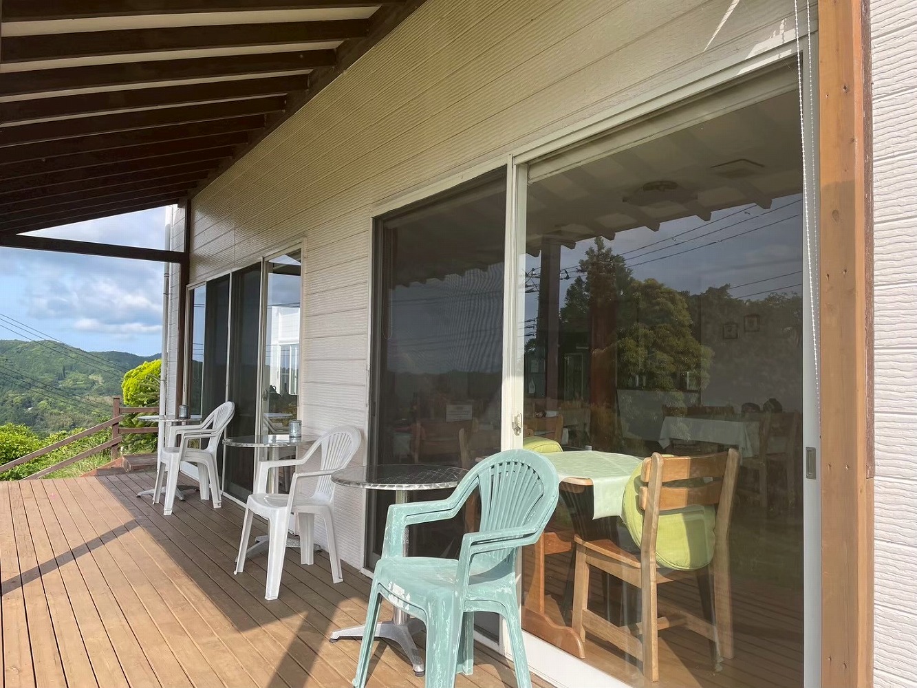 デッキに出ると、目の前には青い海と緑の里山が広がり、都会では味わえない“透明な空気”が体を包み込みます。