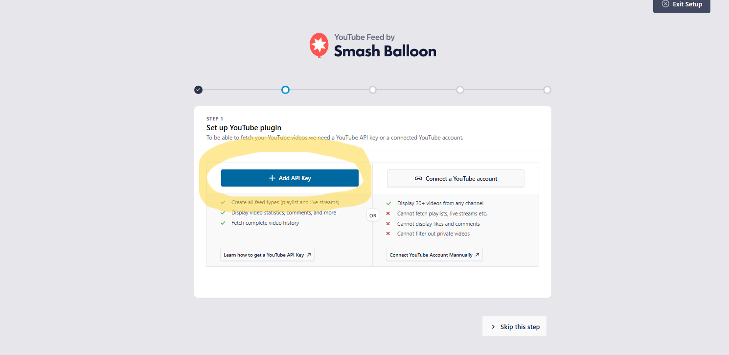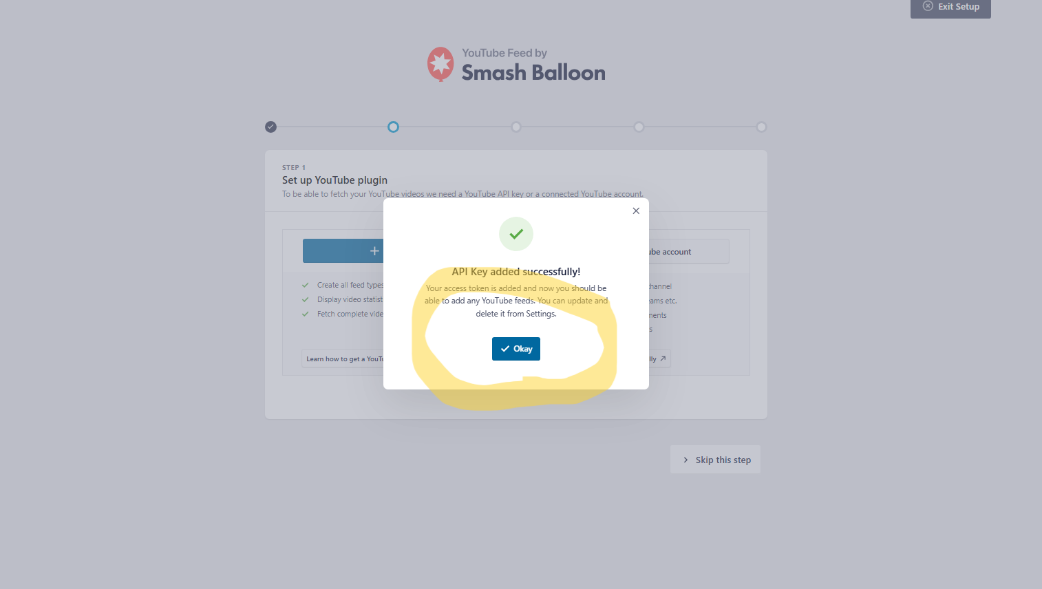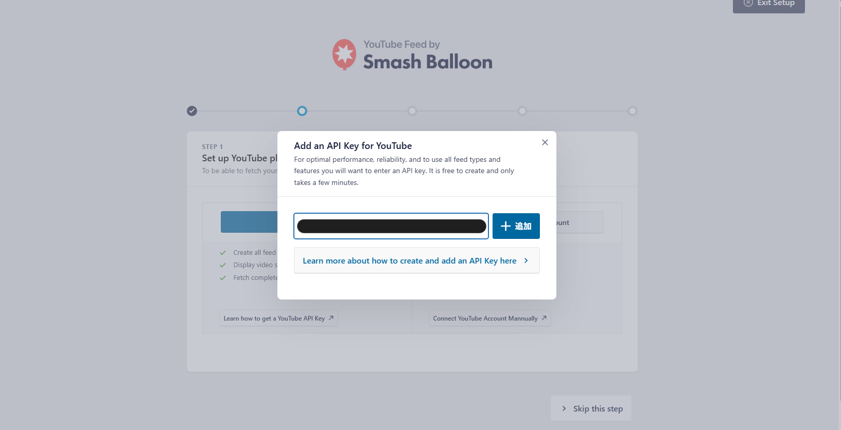 このAPIキーをFeeds for YouTubeの設定画面で入力すれば、YouTubeとの接続が完了します。