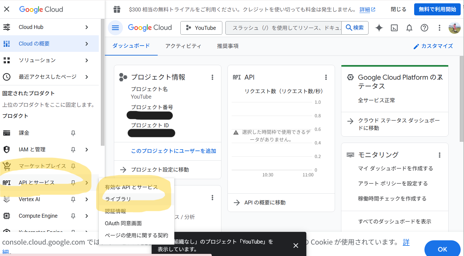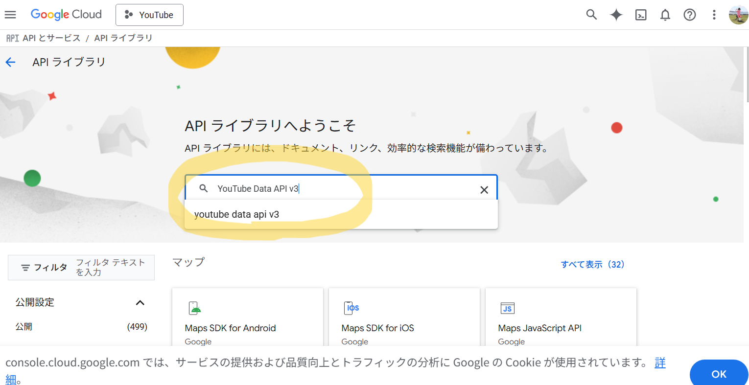 エラーコード403「YouTube Data API v3」が有効化されていない