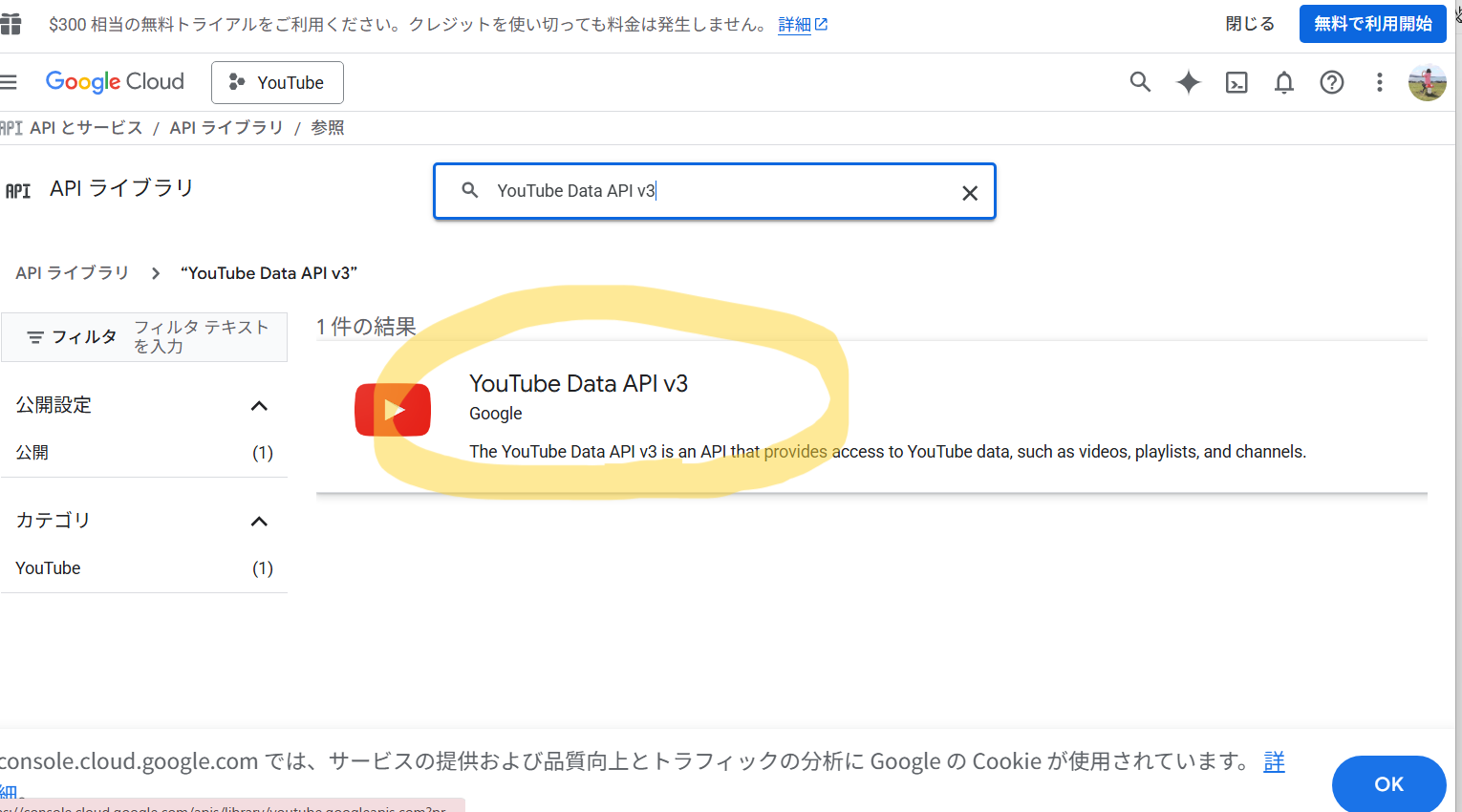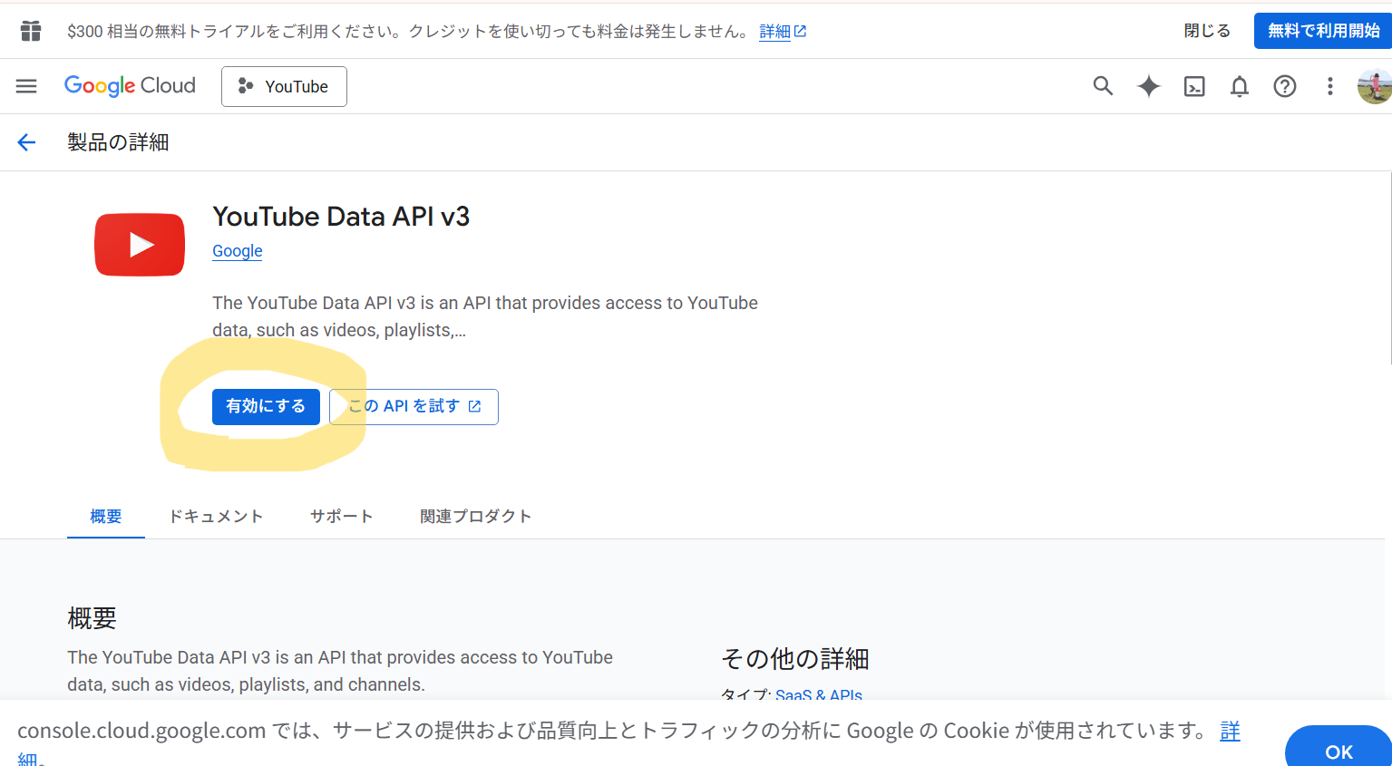 YouTube Data API v3を有効化