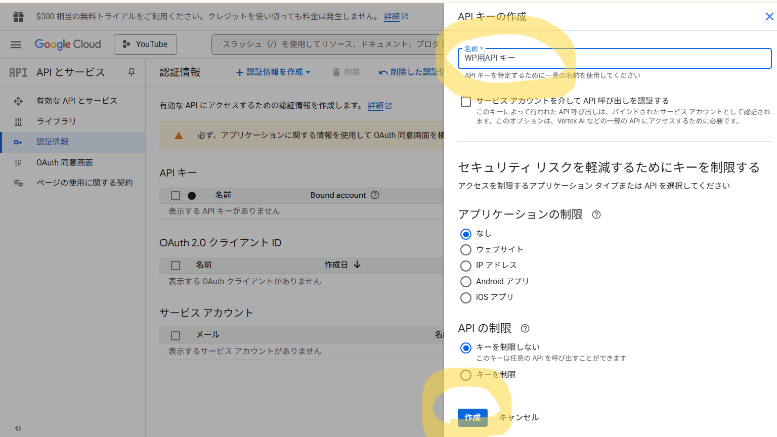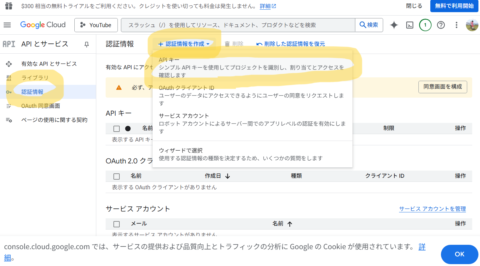 認証情報(APIキー)を作成