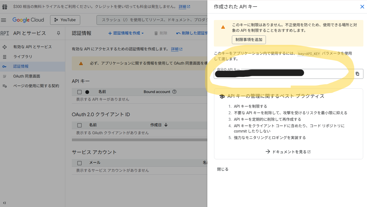 YouTube APIキーを取得する(Google Cloud Platform)