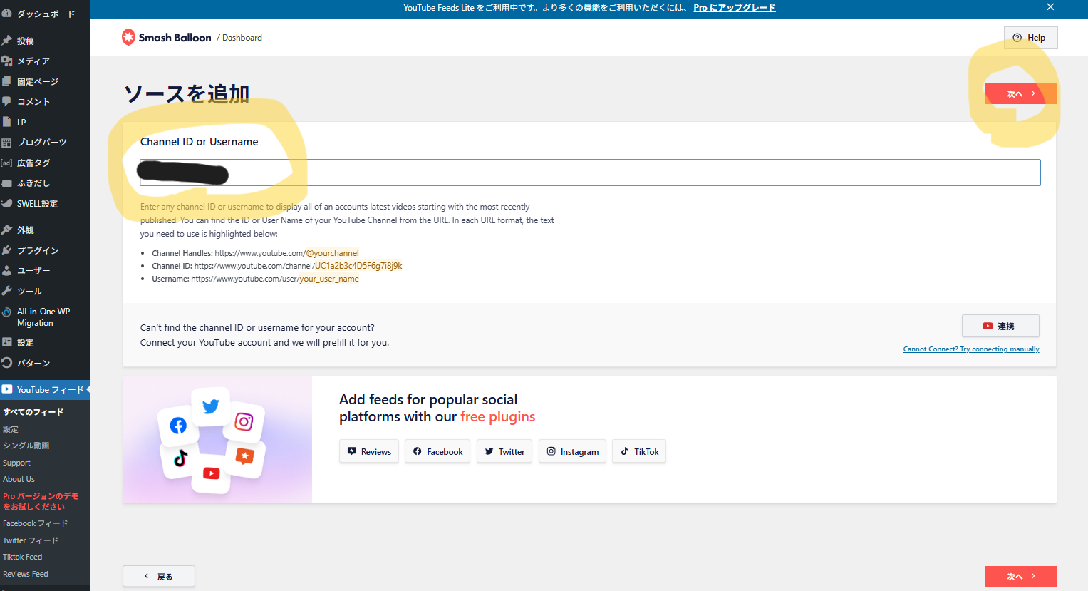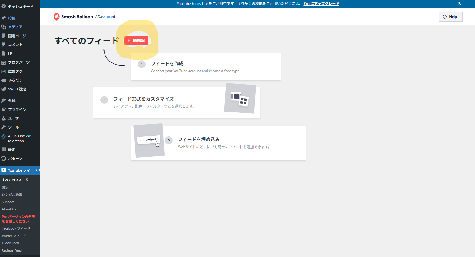 続いて、あなたのYouTubeチャンネルをWordPressサイトに表示するためのフィードを作成します。