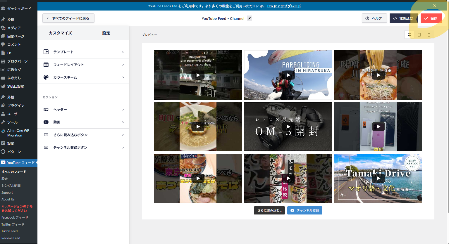 Feeds for YouTube(旧Smash Balloon YouTube Feed)は、WordPressのサイト上にYouTubeチャンネルやプレイリストの動画を自動で表示できるプラグインです。