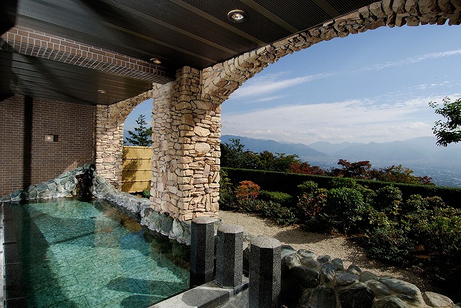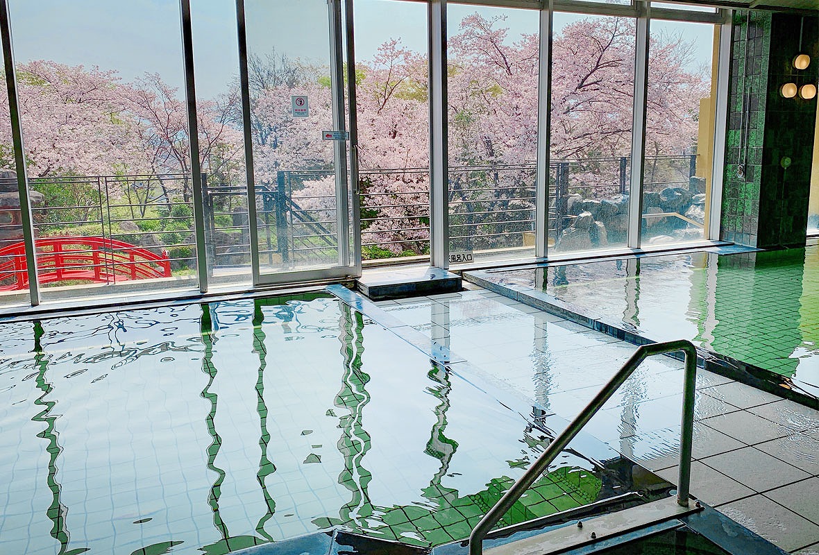 ・美肌効果や筋肉痛に効く天然温泉で、四季折々の景色とともに心身を癒せる