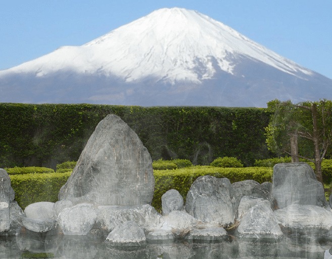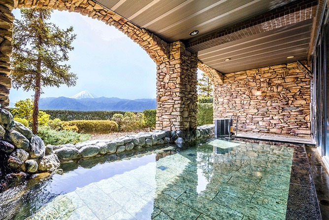 富士山の溶岩素材を贅沢に使用した浴壁や浴床が特徴で、富士山の伏流水を利用した新鮮で清らかな温泉を心ゆくまで楽しむことができます。