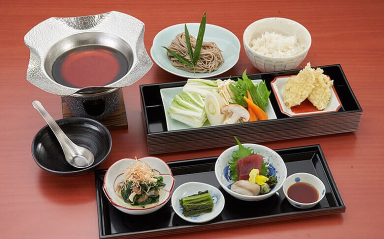 施設内のお食事処では、山梨県産の新鮮な食材をふんだんに使った料理や地酒を楽しむことができますよ。
