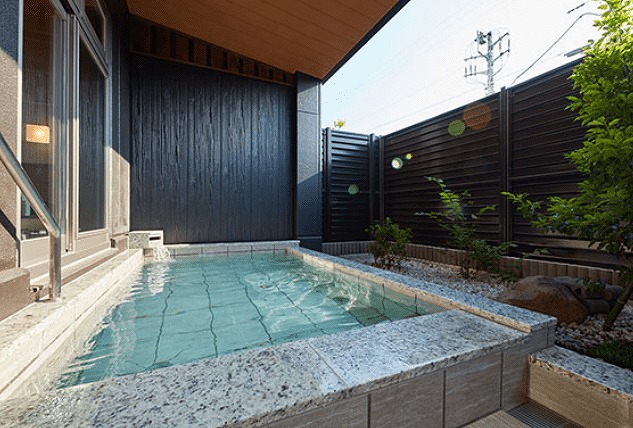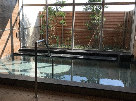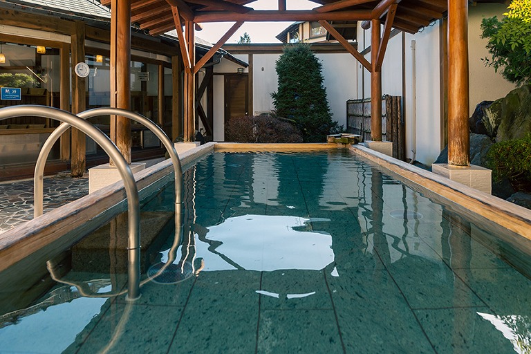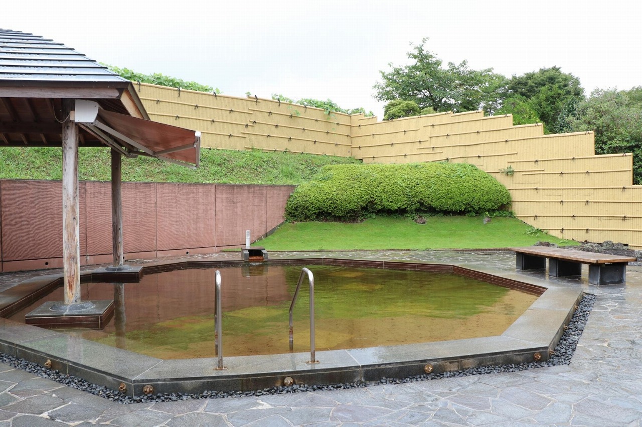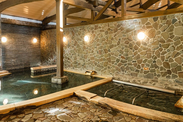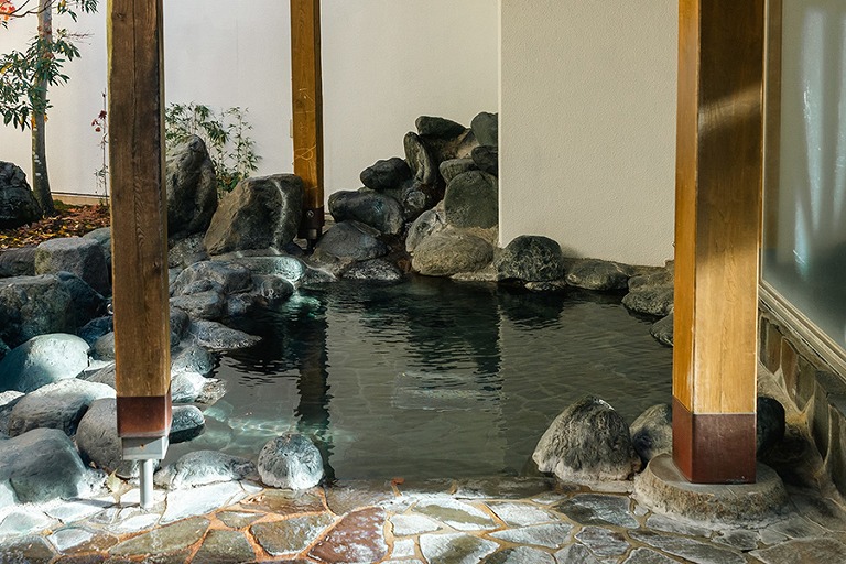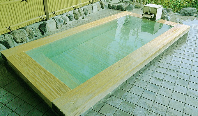 温泉は御影石を使った落ち着いた雰囲気の内湯と、庭園風の露天岩風呂の2種類があり、ぬるめの36℃(平均41℃)の湯温でゆっくりと体を癒せます。