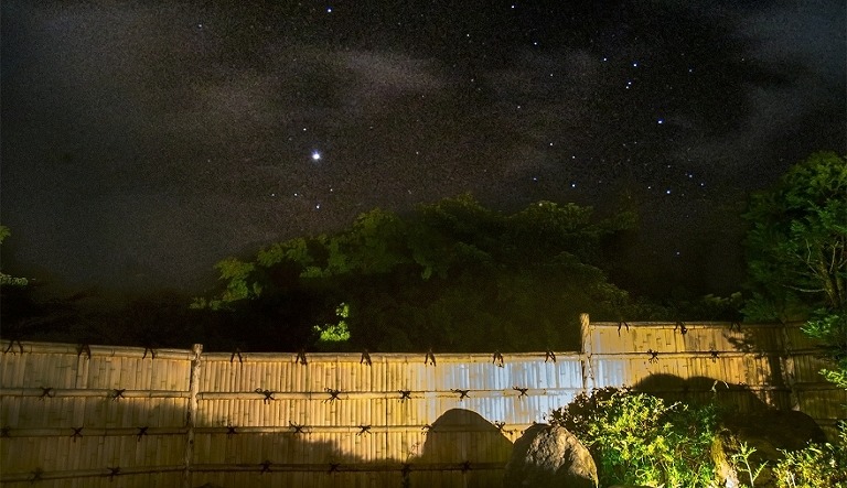 ・ライトアップされた桜や庭を眺めながら、癒しの時間を過ごせる