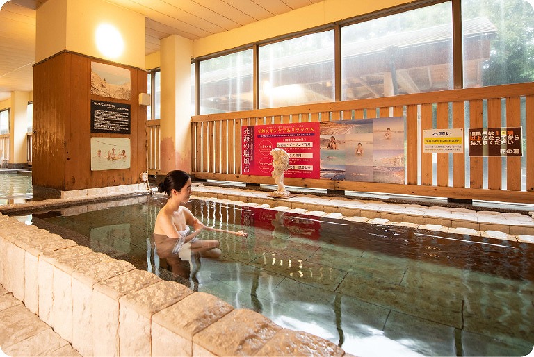 ミネラル豊富な死海の塩を使用した湯や、高濃度炭酸泉を楽しむことができ、筋肉痛や疲労回復などに効果があります。