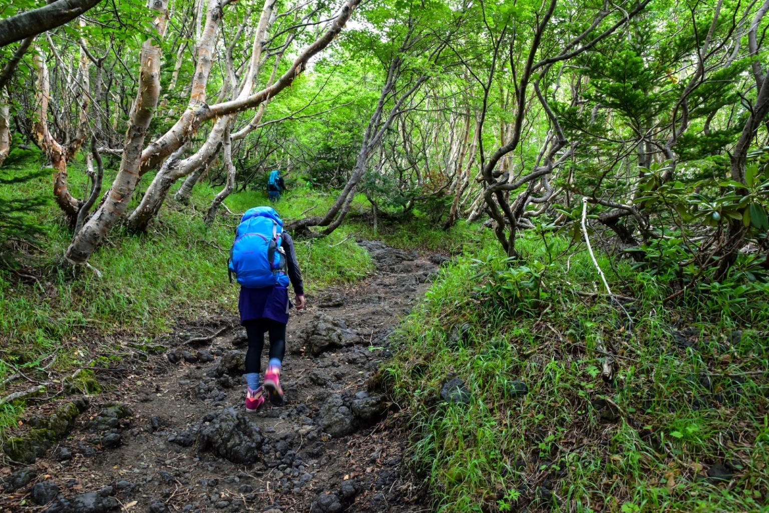 五合目から七合目付近までは樹林帯が続き、自然を楽しみながらのんびりと登ることができます。