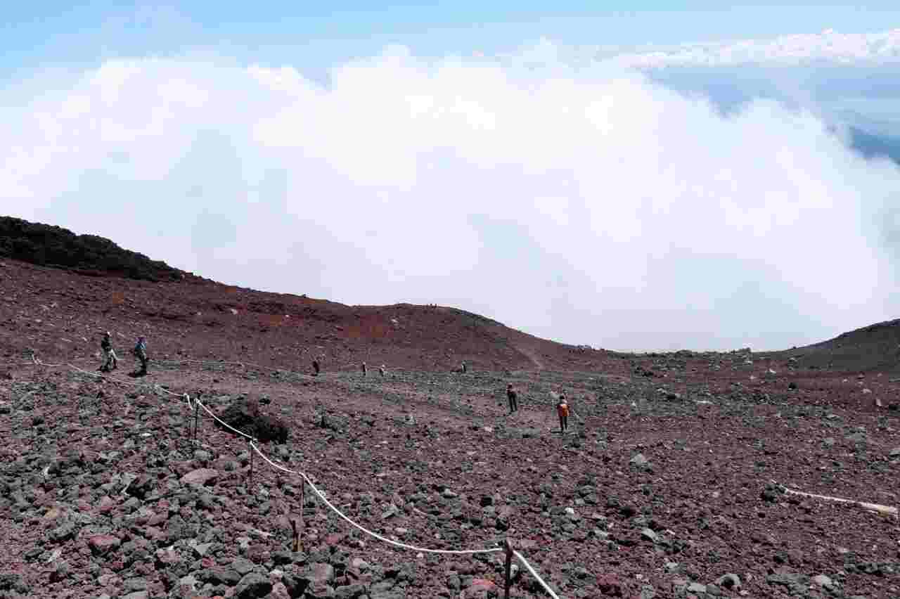五合目から六合目は、ゆるやかな黒砂の道が続くため頂上を望みながら斜面を登ることができます。