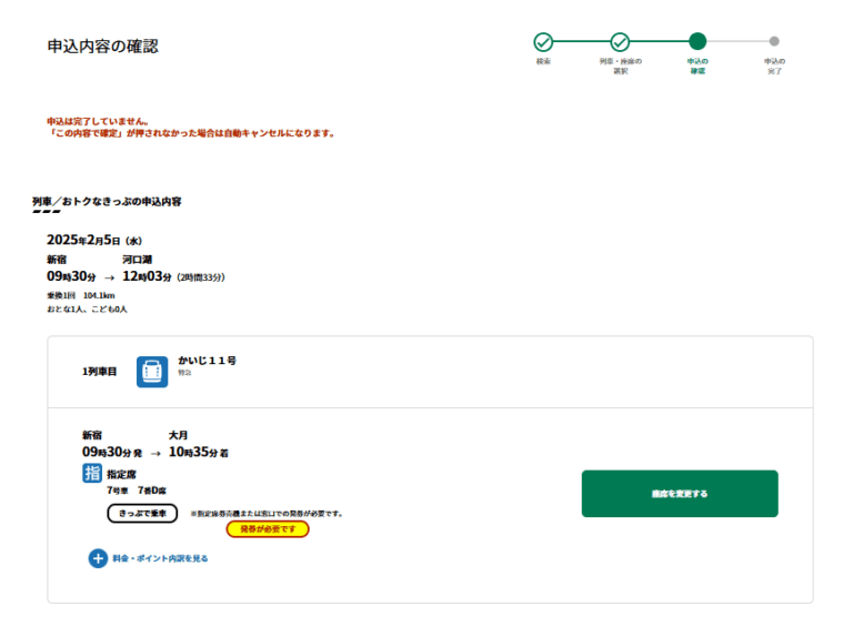- 「乗車券を申し込む」・・・指定席券売機または窓口での発券が必要です。