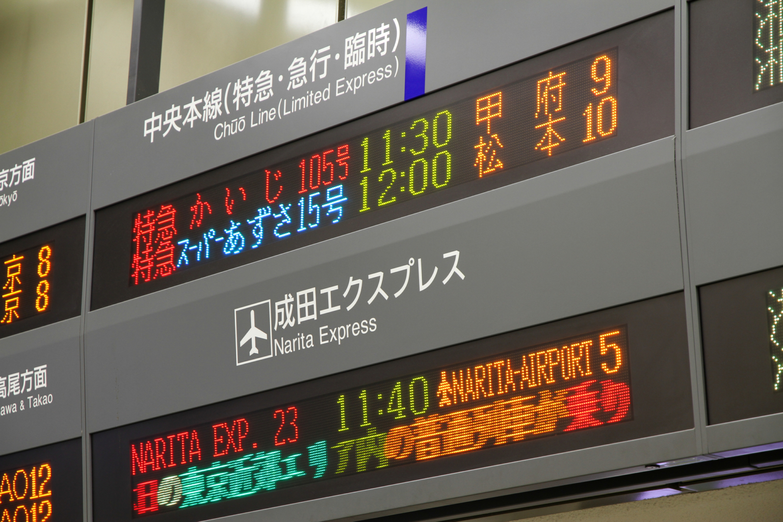 かいじ・あずさ共に、1時間に約1本ペースで電車は到着しますので、自身の時間に合わせて乗車するのが一番です。