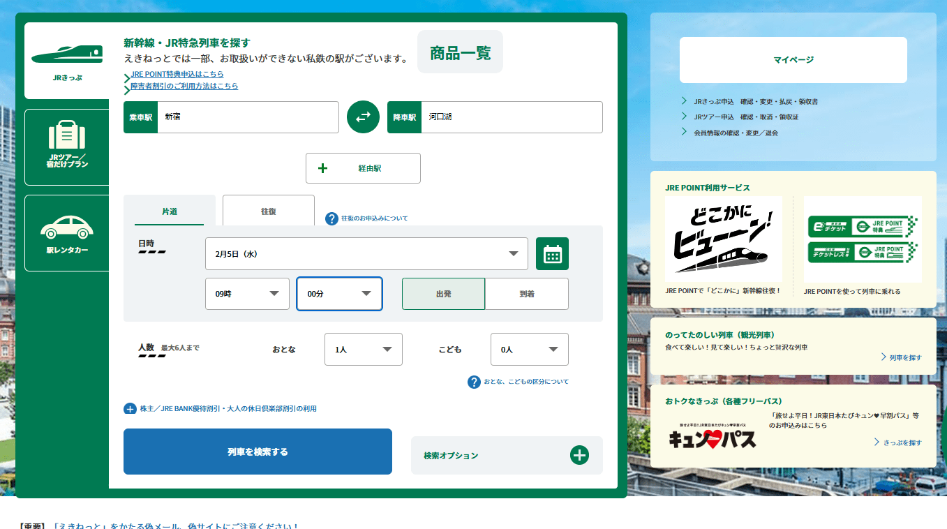 有人「みどりの窓口」や無人「自動券売機」は混雑していることが多いので、WEB「えきねっと」にて早めの予約をしていくのが安心です。