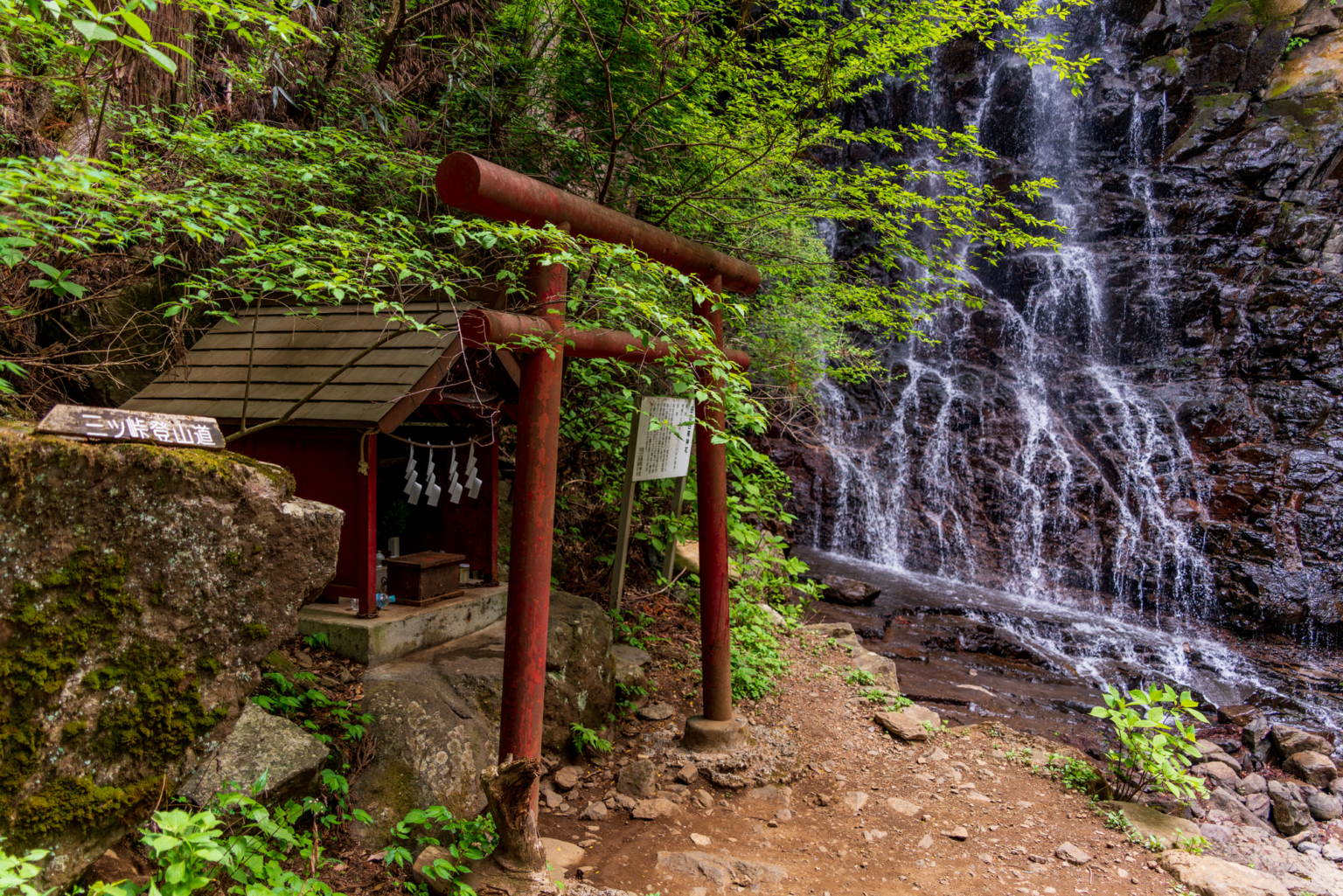 河口浅間神社より坂をゆっくりと登ると、マイナスイオンたっぷりの母の白滝と出会えます。