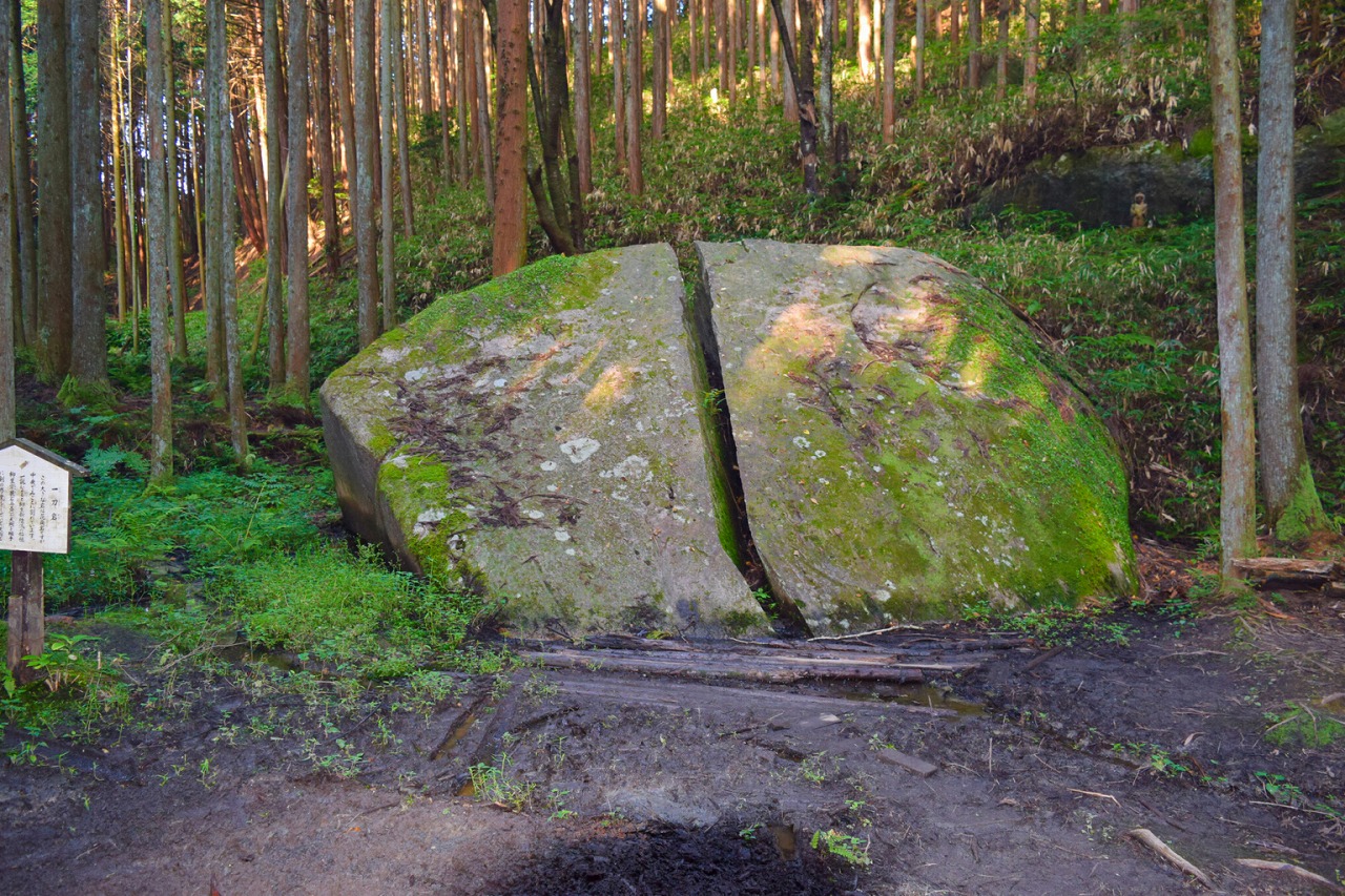 伝説によれば、柳生宗厳が天狗と試合をした際に思い切り一刀を振るったところ、天狗を切り捨てたはずの刀が、目の前にあった巨石を二つに割ったと言われています。