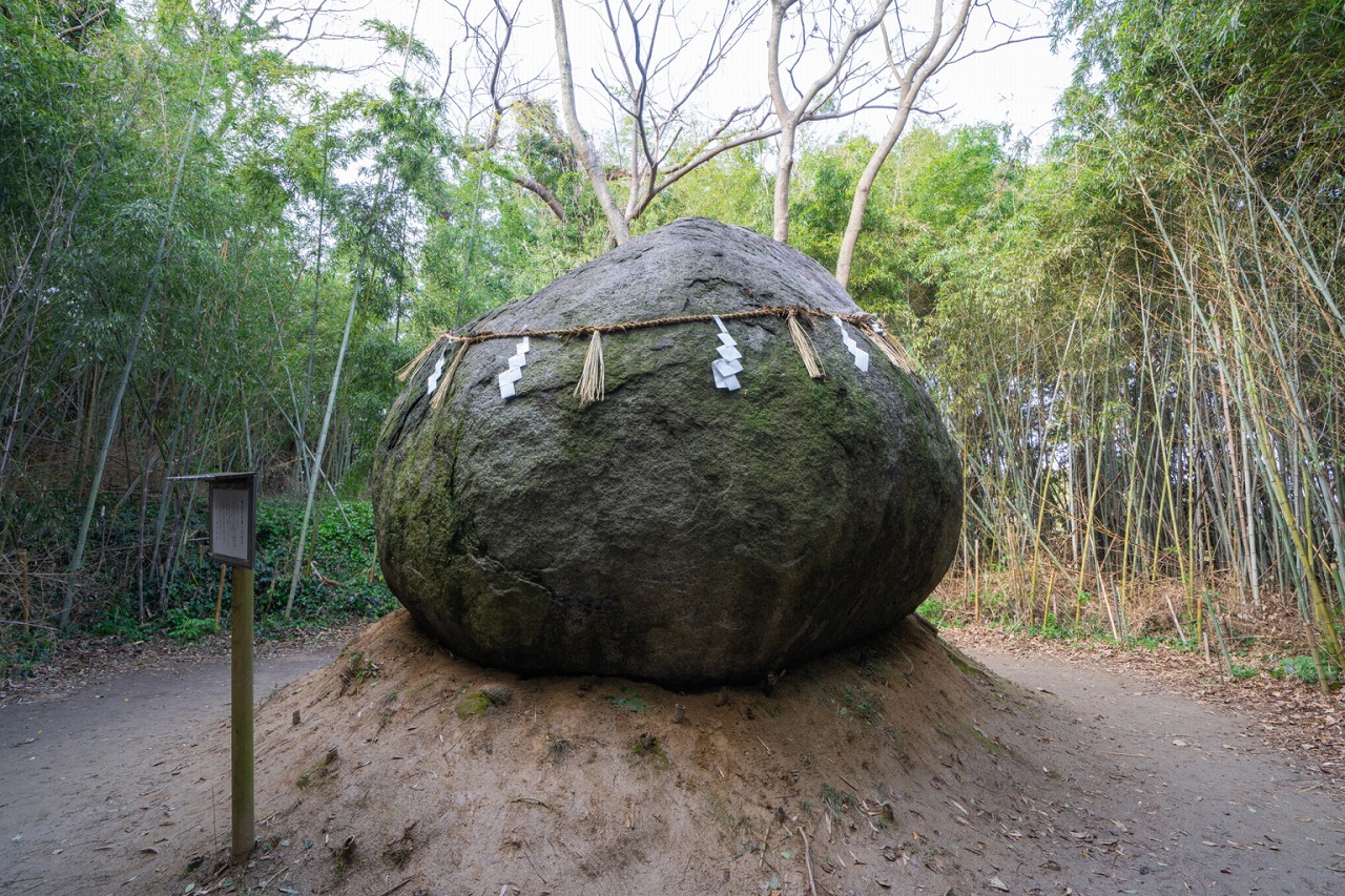 直径約6メートルの迫力のある巨大な石で、形が鈴に似ていることから鈴石と名付けられました。