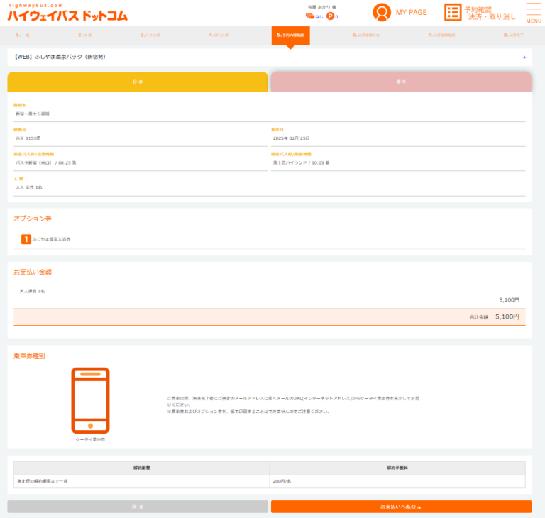 最後に、選択した往復のバス便に間違いがないか、予約内容をしっかり確認 しましょう。