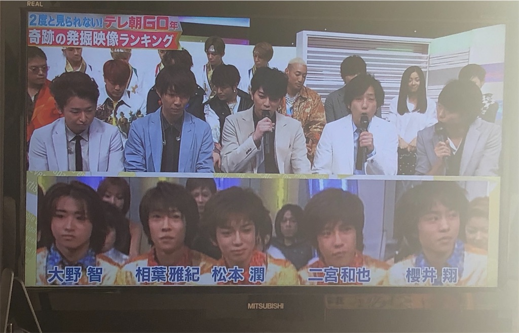 そして、ここで嵐の過去映像のコーナー。スタジオでこの動画を見てる本人は、照れ笑い。