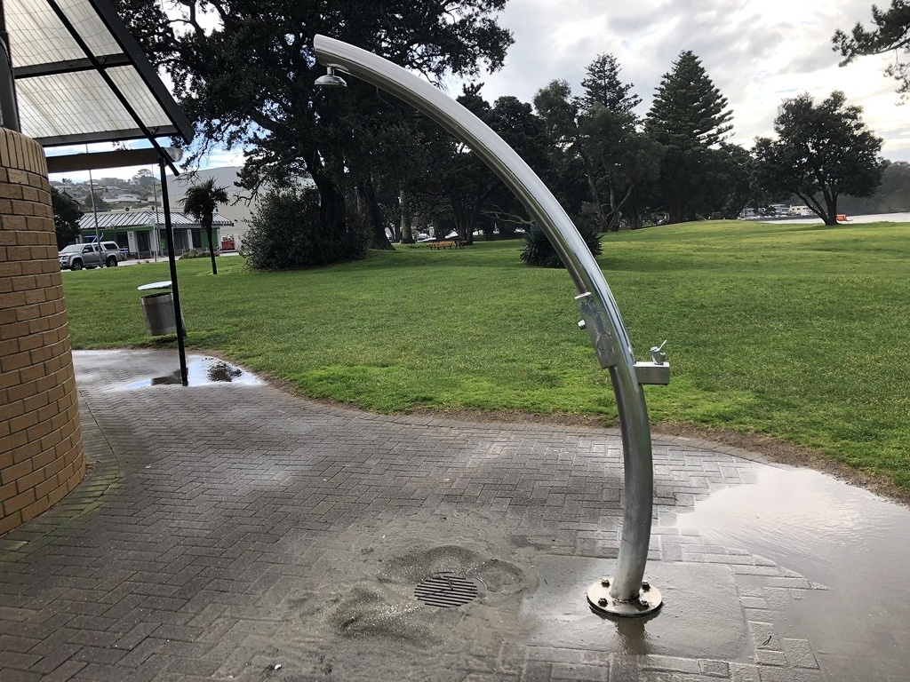 今まできちんと歩いたことがなかったけれど、海岸沿いには屋外シャワーがあり、真冬でも泳ぐ人の姿がちらほら。
