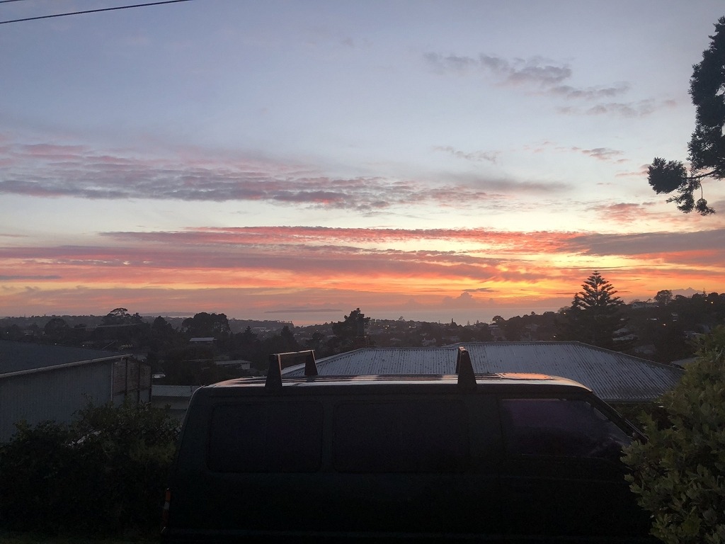 ちょうどその日、日本でも話題になっていた「ピンク空」が、この街の空にも広がっていた。