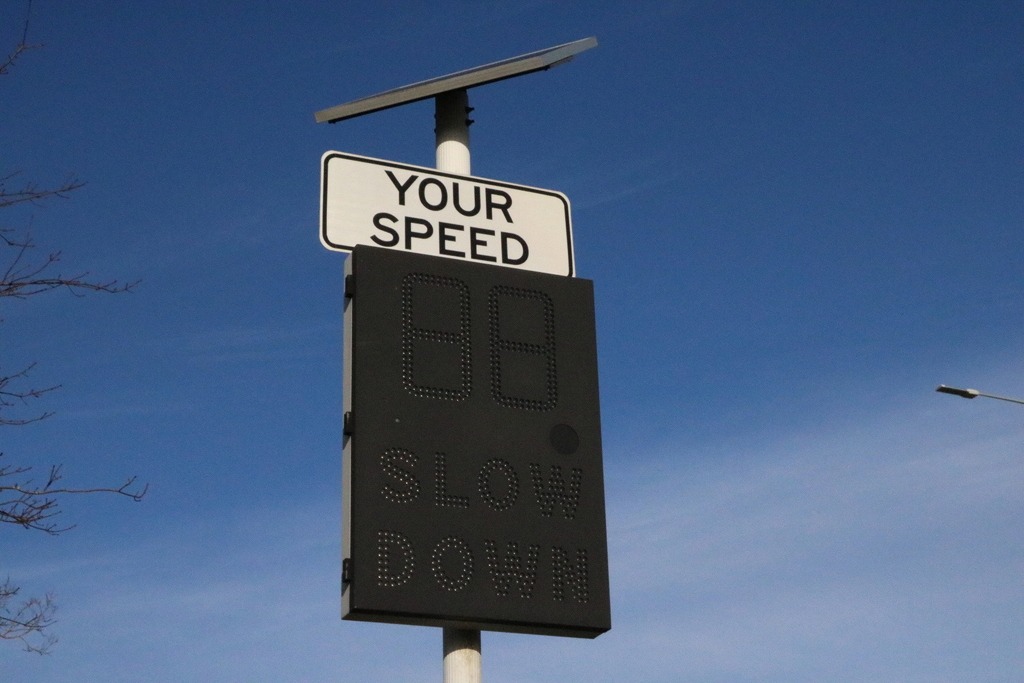 また、道路脇には車のスピードを表示する看板もあり、「今どのくらいの速度で走っているか」がすぐ分かる。