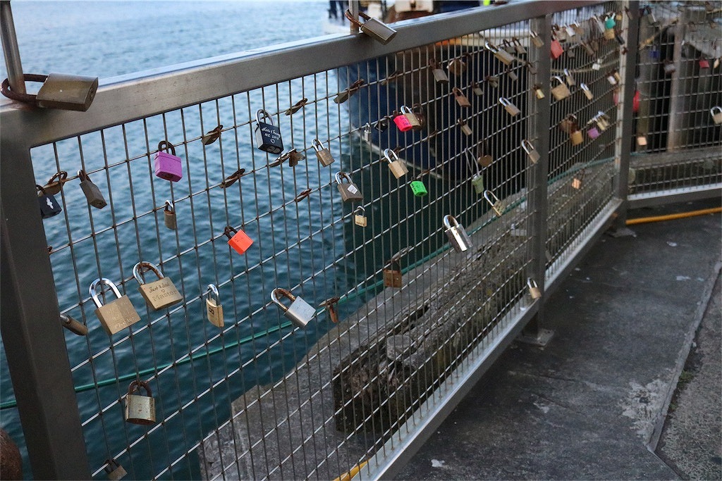 道中には、カラフルなガス管や、恋人たちの鍵が無数にかけられたフェンスも。