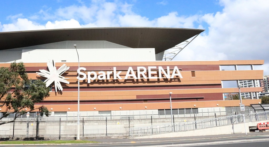 潮風を感じながら歩いていると、途中にこんなカラフルなコンテナが並んでいたり、ライブやコンサートが開かれる「スパークアリーナ(Spark Arena)」が見えたり。