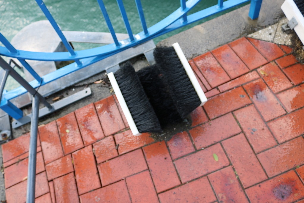 雨が降っていたので、まずはここで水滴を落として〜と言われ、いざ船上へ!