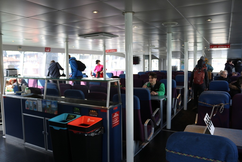 船はこんな感じの二階建て。中は広く、席もたくさんあります。