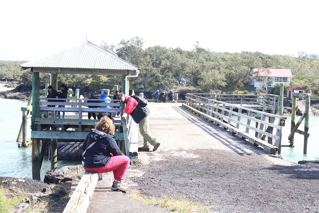 この日は天候の影響で、通常の港(左下)ではなく右下の船着場に到着。
