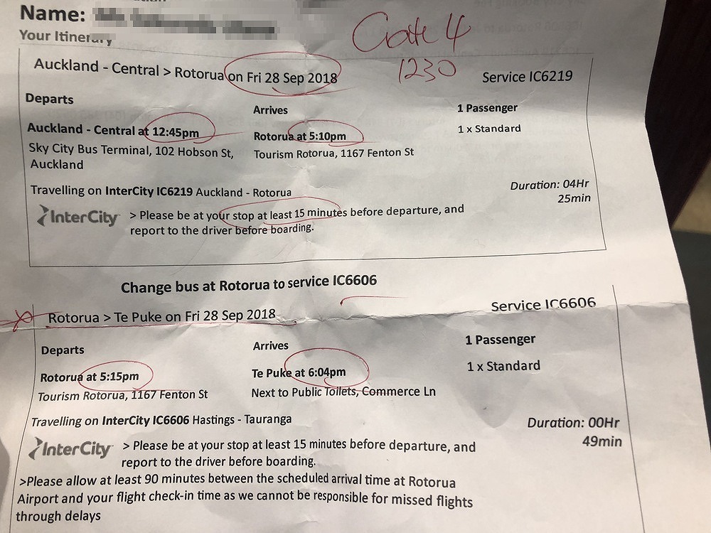 出発はスカイタワー下のバスステーション。チケットは窓口またはInterCity公式サイトから購入できます。