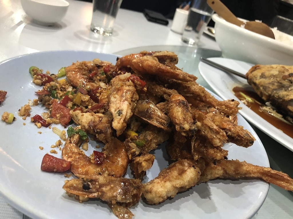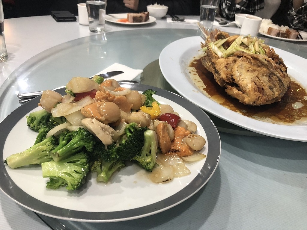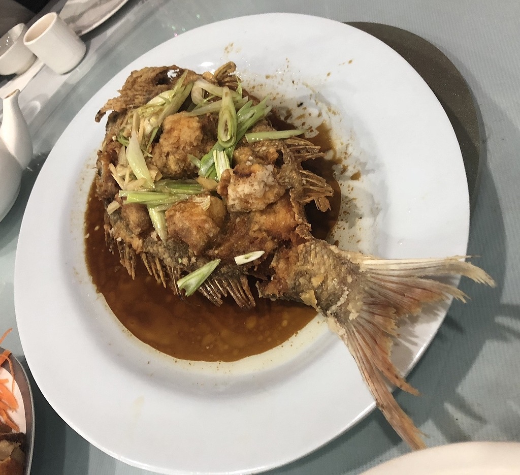 ローカルな中華料理店では、家のオーナーが持ち込んだ魚をその場で調理してくれました。