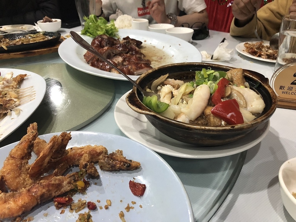 回転テーブルを囲んで食べる中華ディナー。どの料理も絶品、特にその魚は忘れられない味。