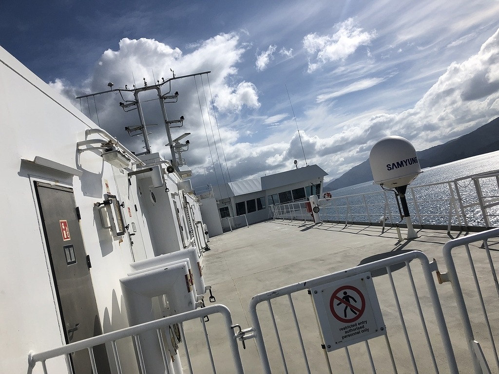デッキに出ると、潮風とともに壮大なパノラマビューが広がります。