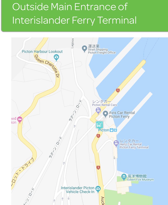 なんと、InterCityのバス停はBluebridgeの港ではなく、Interislanderのフェリー乗り場にあるのです。