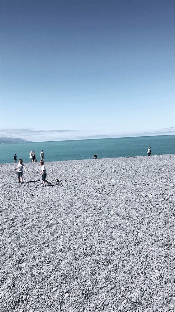 途中、海沿いの街 カイコウラ(Kaikoura) で30分の休憩。