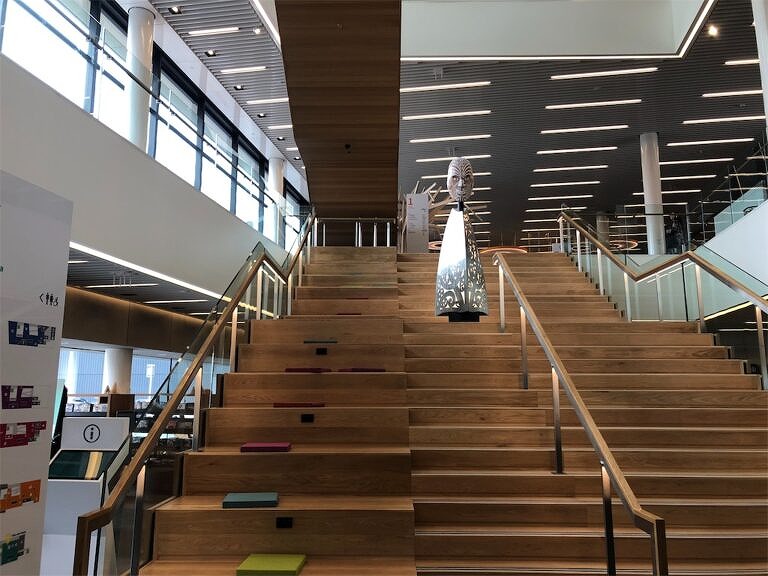 街の中心には、ウォールアートやモダンな図書館、新しい建築物が増えています。