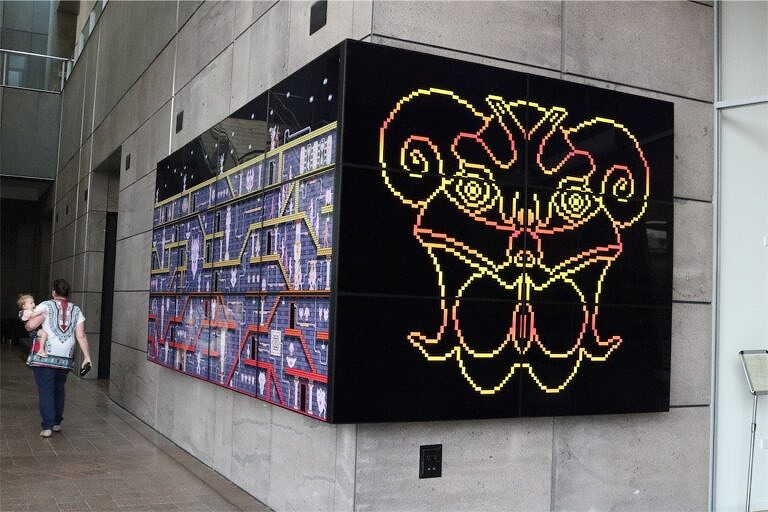 アートギャラリーには、挑戦的な現代作品が並び、“手”のオブジェが印象的な建物の美術館の中では、絵画と観る人が一体化するような展示もありました。