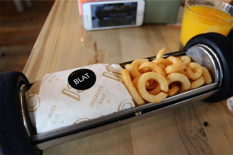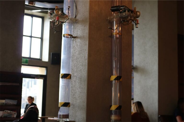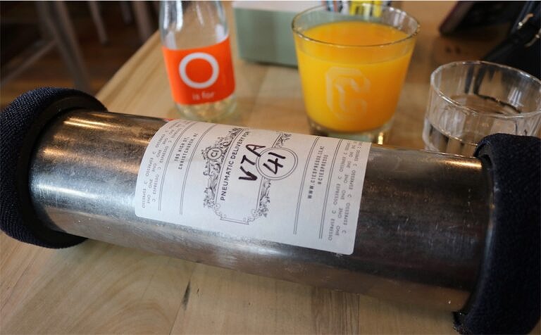 店内には管が張り巡らされていて、注文した商品がその中をシュポーン!と飛んでくるという仕組み。