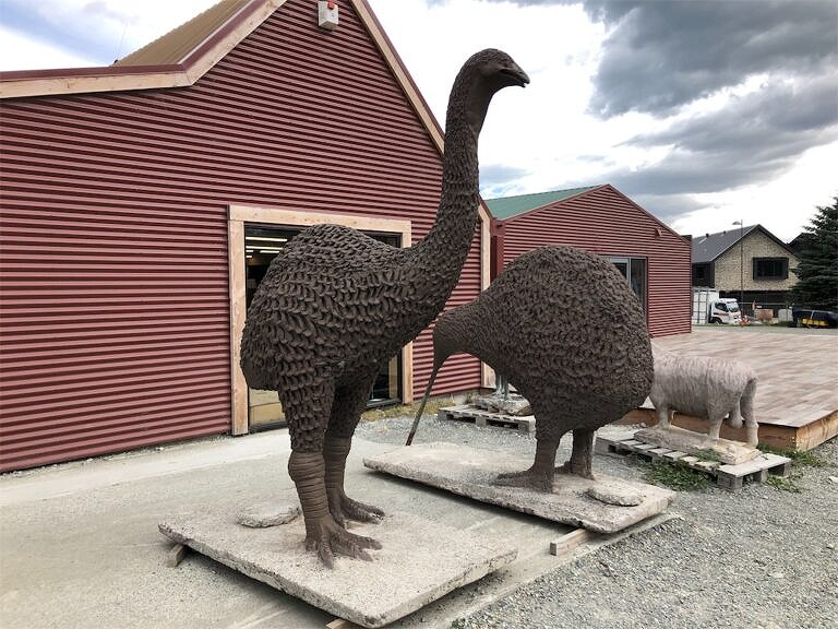 街中を歩くと、MOAとキウイと羊のモニュメントが。
