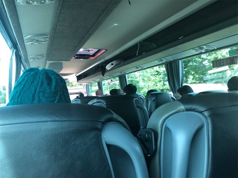 青いバスに乗り込むと、運転手さんと日本語ガイドさんの2人体制。