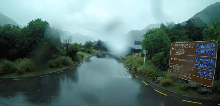 NZ最高峰・マウントクックを望む絶景スポット……のはずが、この日は土砂降り