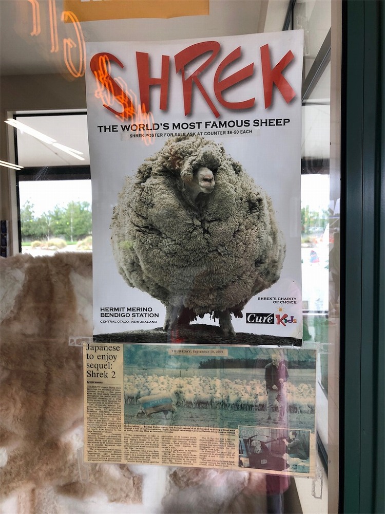 道中の売店で見つけたポスターに書かれていたのは、「SHREK」という伝説の羊。