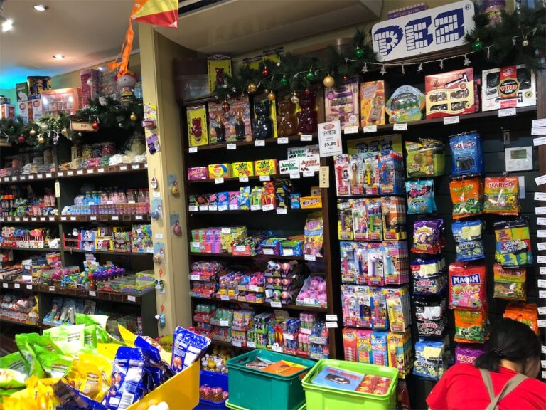カラフルなキャンディやチョコレートが棚いっぱいに並び、まるで海外版の駄菓子屋さんのよう。